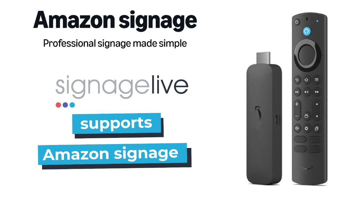 Signagelive joins the list of Amazon's CMS software partners and can now integrate with Amazon's Signage Stick, the super affordable media player alternative the e-commerce giant introduced last year.