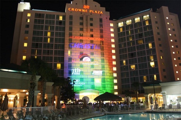 The party was held on the courtyard of the Crowne Plaza Orlando Universal Hotel, and Electrosonic worked with Christie, a premier sponsor for the event, on the projectors, Mousetrappe for content, 7thSense Design for the multi-channel media server, JMR Surveying Group for the digital building survey, and JBL for the big audio.