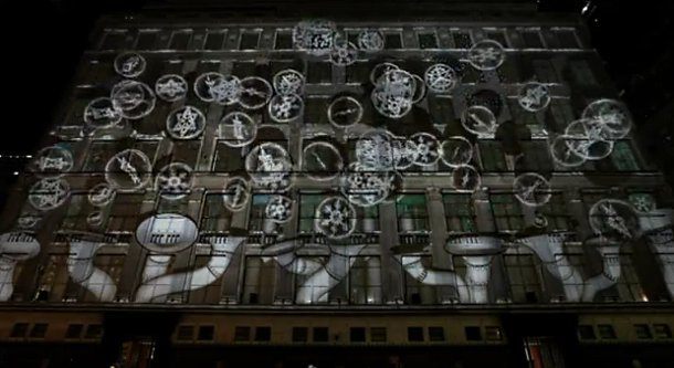 One of the tour stops will be Saks Fifth Avenue, which is doing a 3D projection map of the flagship store’s full street facade. Developed with the creative shop Iris, the program  called The Snowflake and the Bubble show is running on what looks like every 15 minutes during evenings.