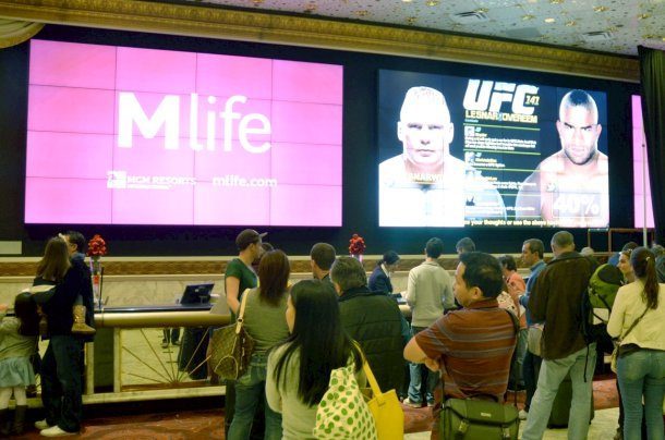 The screen showing UFC is live data from people standing in the lobby tweeting about the fight, and voting on who they think is going to win. The program was put together by Randy Dearborn and his team at MGM.