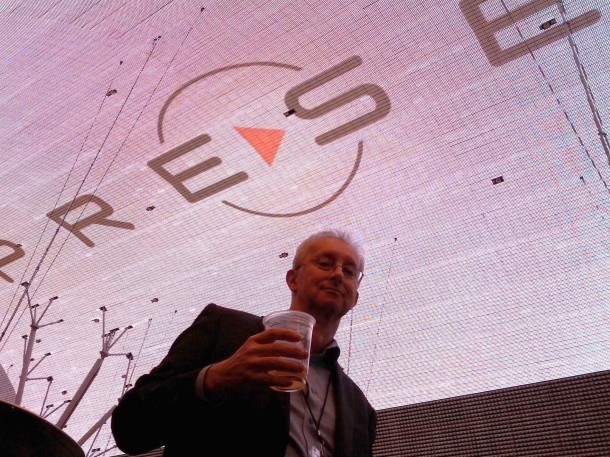 Among the things we did for the big Preset Group mixer last week was get some time (very inexpensive) on the massive LED canopy that covers the length of Fremont Street in old downtown Las Vegas. If you are going to do a big mixer for the digital signage industry, you have to make use of a very big digital sign.