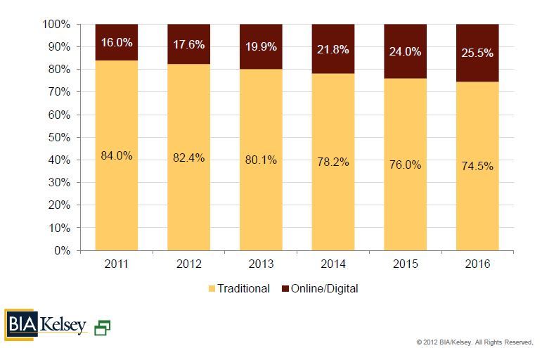 The research consulting firm BIA/Kelsey’s newest U.S. Local Media Forecast (for 2011-2016) anticipates strong growth in the digital segment of local media advertising through 2016.
