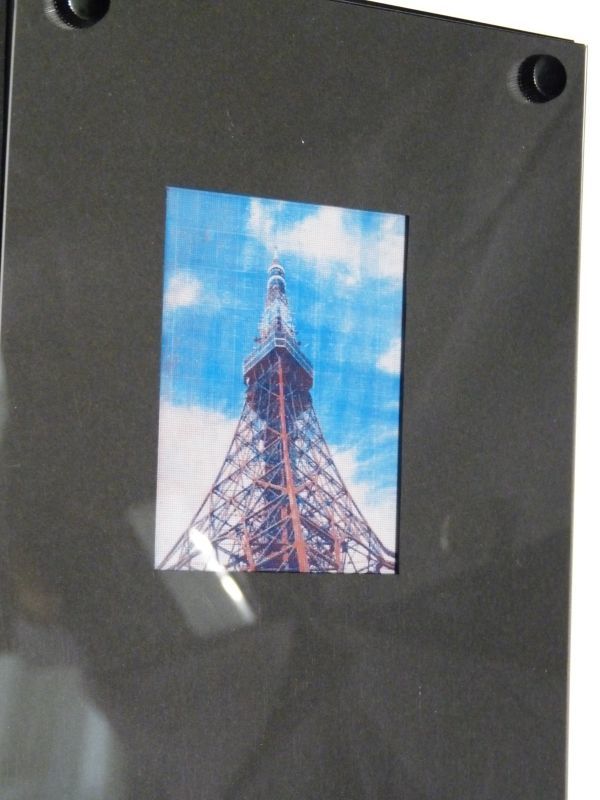 The prototype showed at SID 2012 displayed colors by moving red and cyan colored particles up and down. It has a screen size of 5 inches, pixel count of 600 x 800, resolution of 200dpi, gradation of four, reflectance of 30% and contrast ratio of 10:1. It uses amorphous silicon (Si) TFTs for the back board.
