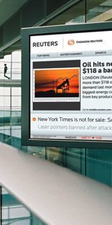 This signage solution is designed to inform, entertain and captivate audiences by combining a customer’s messaging with Thomson Reuters news and market data, making it ideal for branches, lobbies, stations, corporate offices, airports and other public spaces. The Thomson Reuters Digital Signage service will consist of content provided by Thomson Reuters and hardware, network and software services exclusively provided by the Company.