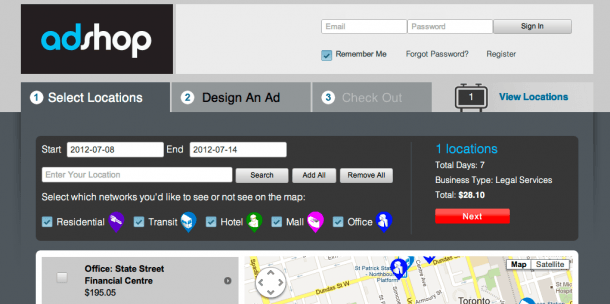 From the purchase of a digital media campaign in one geo-targeted subway station or shopping mall, to the purchase of 50+ Residential high-rises located within a 10-kilometer radius from an advertiser’s retail-location; the Ad Shop is an unprecedented new solution for advertisers to reach their customers like never before.