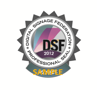 “Derived from the Privacy Standards that were developed by the Standards Committee,” says the DSF, “and adopted by the organization in fall 2011, the Seal of Professional Excellence is a tangible designation for organizations that have committed to support and adhere to the DSF’s Professional Standards. The seal is intended to be a graphic symbol synonymous with excellence in professional conduct and integrity within the digital signage industry.”