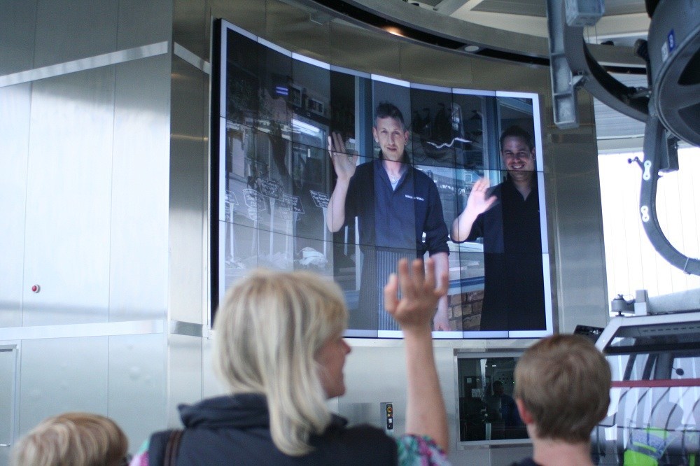 When you get on at either end, you see big video walls driving content for the line’s sponsor, Emirates Air Line. There are a total of 78 screens, put together by the Pioneer Group and running the Harris InfoCaster digital signage platform.