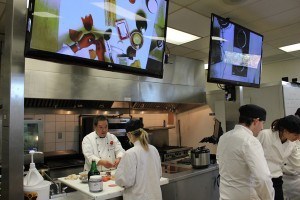 The Culinary Program at Okanagan College, a community college in south central British Columbia, is using digital signage gear to demonstrate food handling, preparation and cooking techniques to students. That’s usually been done with big fella mirrors hanging at an angle over the instructor’s table, but that has always meant just one long view on what’s happening.