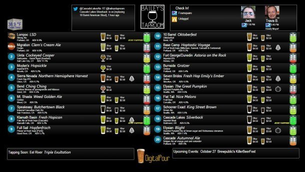 Portland-based Digital Pour has a menu board that shows what’s on tap in a bar, but is also the front-end of a beer inventory management system. So the screens can tell you the types of beer and pricing, but also the state of the keg (ie just tapped or only the dregs left).