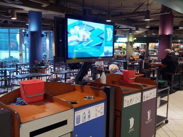 Interesting. Thumbs up to whoever decided an instructional video loop was simple way to beat into people’s heads that the different bins are there for reasons, and that the thing didn’t need ads to pay for it or stupid news headlines and weather reports to dress it up.