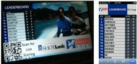 The San Diego-area start-up Locbit did an interesting little screen-to-mobile integration project this past week with a PGA Tour supplier, letting golf fans scan a QR code off rented leaderboard screens temporarily positioned around Torrey Pines (famous golf course) to get the full scores at the Farmers Insurance Open.