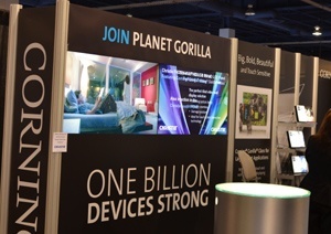 Corning was promoting its Gorilla Glass in large sizes to protect signs located in demanding environments. The displays are Christie 55-inch LCDs with Gorilla Glass directly bonded to the display.