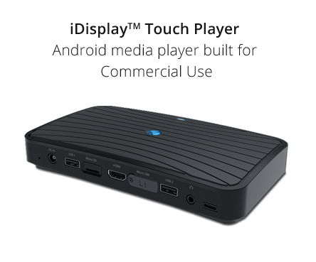 The Touch Player can be configured with either Dual or Quad Core processing power to meet operators’ content needs, ranging from standard operations to complex and image-rich high resolution graphics. As well as Android-supported touch screens, the Player accepts external hardware such as barcode scanners, printers, external mice and an iDISPLAY™ Connect Box. This supports up to 12 pushbuttons or touch sensors to activate different applications as well as a motion sensor which launches content when customer presence is detected.