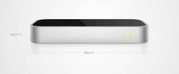 That device is a little USB stick that is roughly the same size as the old white iPod Shuffles. It’s a teeny little black glass and aluminum thing that would also be mistaken for the world’s smallest, narrowest smartphone.