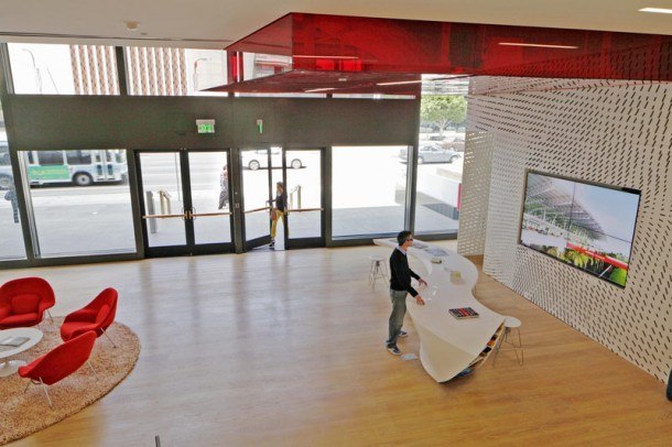 A retail design firm, interactive agency and CalPoly students have collaborated on and lit up a very nice, innovative corporate lobby project that combines projection, gesture sensors, digital signage software and HD visuals.