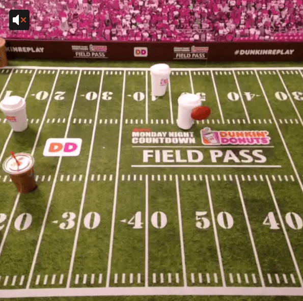 The micro-spot using Twitter’s Vine service ran on ESPN’s Monday Night Football the other night, and was a stop-motion thing for the coffee shop chain, with cups running for a touchdown. Yay.