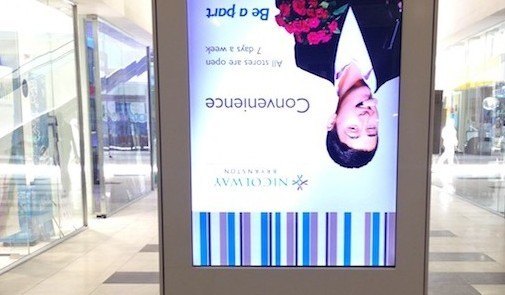 You Could Argue The Spot Will Get Noticed This Way … October 8, 2013 by Super UserBlue screens of death and Windows error and license activation notices we’ve seen before, but content upside down???Spotted by reader in a mall in suburban Johannesburg, S. Africa.