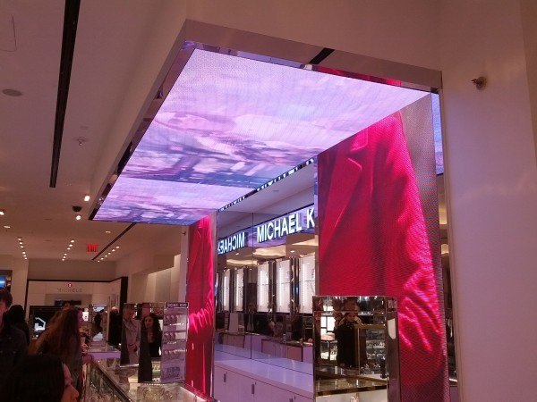 When I got in this space I could walk through a big department store like this and see a screen or two, truly just here and there. The reno’d Macy’s gives a sense of how digital display is now integral to fashion and cosmetic retailing. Screens are everywhere, and these are BIG screens.
