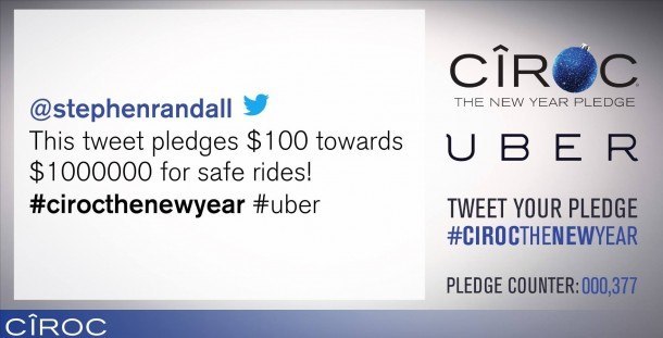 Every tweet or Instagram sent with the hashtag #CirocTheNewYear not only rewarded the sender with a memento of themselves on the Times Square screen, but also unlocked a $100 pledge for four $25 coupon code for new Uber users to redeem for a safe ride home.