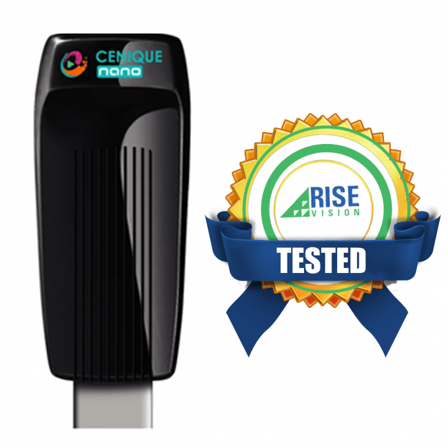 A Hong Kong-based company called Cenique has started selling a pair of Android devices – a box and an HDMI stick – that run Rise Vision‘s free, open source digital signage management system.
