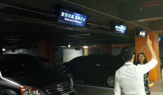 Advantech also had a demo down below in the parking garage that helped staff find their cars. You could key in your license number and locate where you parked, based on data from cameras equipped with plate recognition technology. The parking slot would light up, and directions were provided on the touch directory.