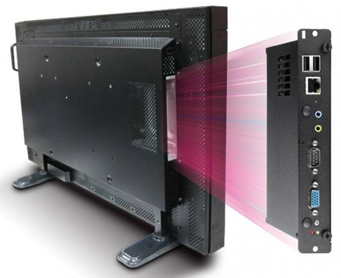 OPS modules are typically found inserted in the bottom or side of the displays. One large problem with this is accessibility when maintenance is required. If your application has screens in an inaccessible location, such as high off the floor like in menu boards, how will you service the unit without having to climb up a ladder, or even worse, interrupting your sales process?
