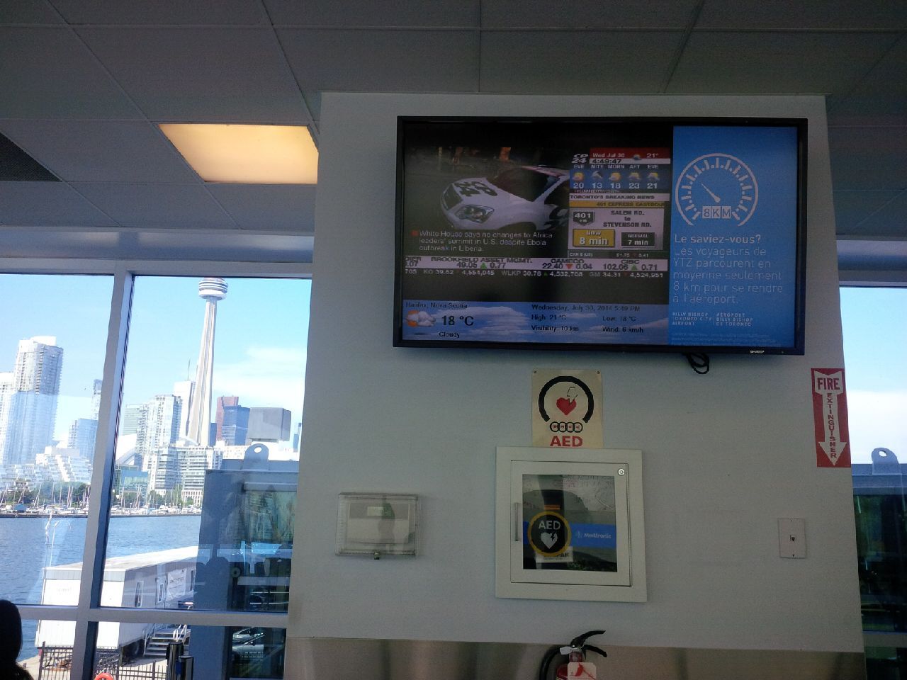 This is a screen in the wait area of the pain-in-the-ass ferry terminal at Billy Bishop Airport, on an island just off downtown Toronto.