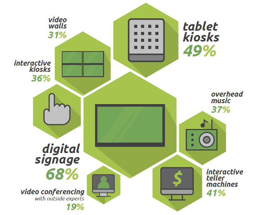 Louisville-based solutions provider Codigo is pretty focused on the small to medium-sized financial services sector, and has released a nice report that looks at how branch banking is evolving and where it is going. One of the interesting aspects of it shows that of marketing technology being put in new branches, digital signage is at the top of the list.