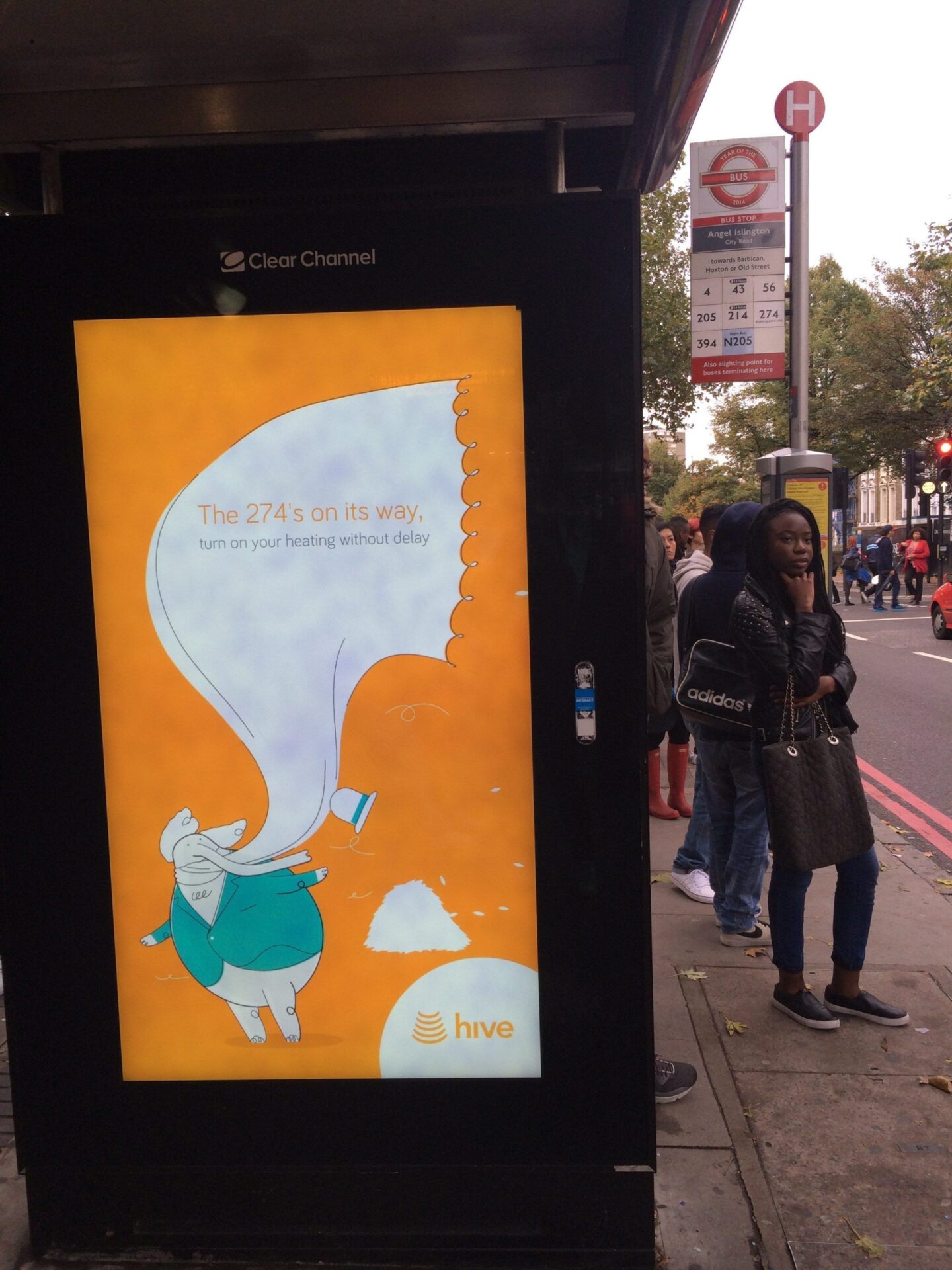 I like this – the UK startup Liveposter worked with Posterscope and an agency, CHI&Partners, to promote the Hive Active Heating service of British Gas on digital screens around London.