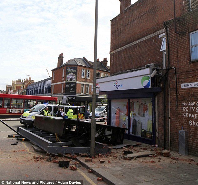 The woman was hit by the huge metal billboard hoarding after it broke free, and fell about 20 feet, reports the Daily Mail.