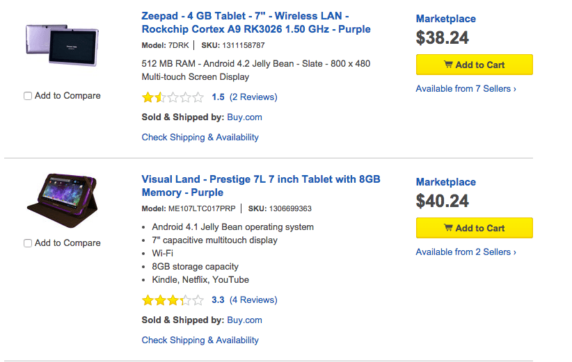 These are brands like Zeepad, Coby and Visual Land that end up in electronics stores at prices waaaaay below what Apple wants, and still gets. Are they equals? No. Does that matter? Not for most basic tasks.