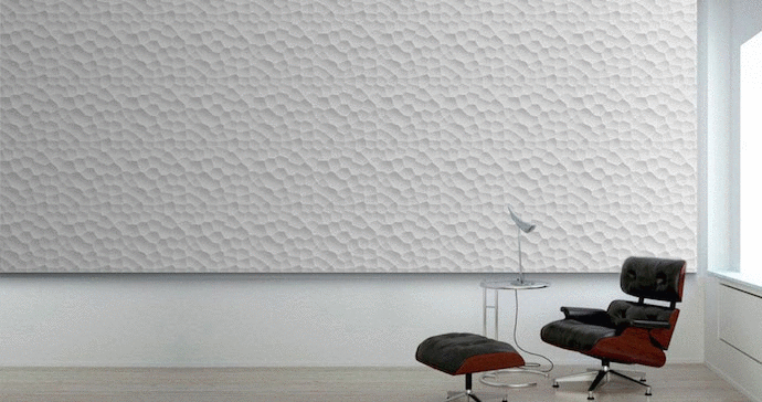 The output can look like paint, but can instantly change colours based on programming, as well as triggers like door switches or motion sensors. So someone could walk into a corporate lobby, walk up to reception, and a sensor would trigger a white wall to abruptly pop up: “WELCOME!”