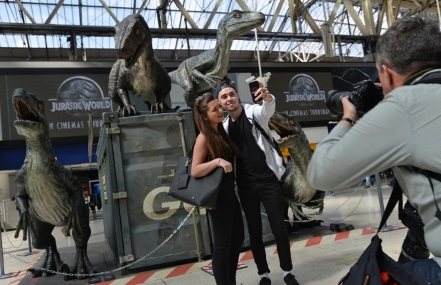 3D models of the movie’s raptors appear to have broken out of a crate plopped in the middle of the main terminal floor, and announcements welcome commuters arriving by train to JURASSIC WORLD Waterloo.