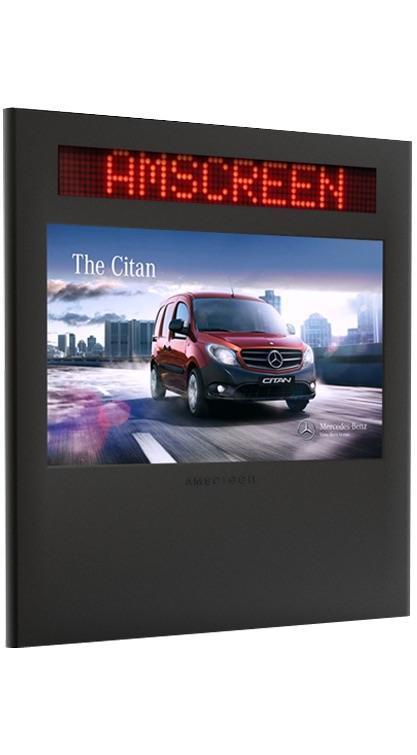 Amscreen has a content management platform, video analytics service and ad serving software, as well as a range of different displays, including newer ones that don’t have that big LED ticker thing.