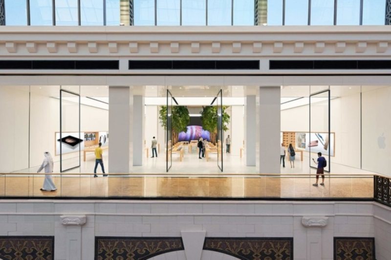 Very different story at Dubai’s Mall of the Emirates, which has a giant, fine pixel pitch LED wall that dominates the rear of the newly opened store. It is reputed to be the largest Apple store on the planet.