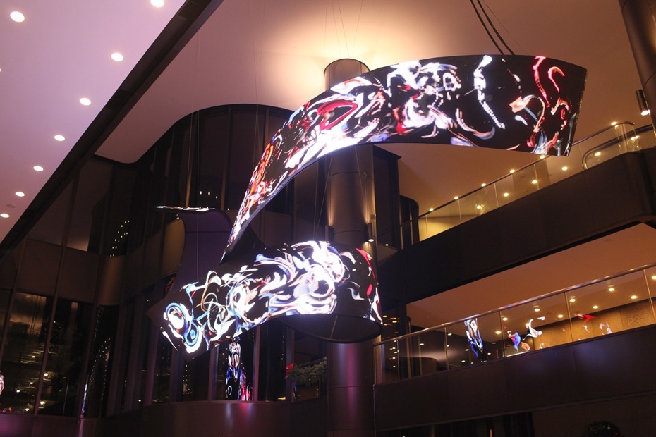 Very nice. The LED modules are P10, aka 10mm pixel pitch. The company that manufactures the modules – Hong Kong-based DesignLED – says it has flexible LEDs with pixel pitches as tight as 1.7mm and 2.5mm, though I am not certain they have the same amount of twisting capability as the one used here.