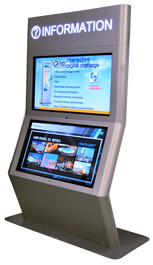 We are one of the only USA display manufacturers at the show. And we will have several of our stock models on display. Parabit is in a unique position to showcase our total solutions at DSE. What makes us different is that we can handle a small to mid-sized digital signage project from A to Z: from conception and design of the content, to fabricating a vandal resistant stainless steel kiosk enclosure which can integrate with various peripherals, including our own proprietary digital signage software. Parabit is the “one stop shop” for small to mid-sized digital signage needs.