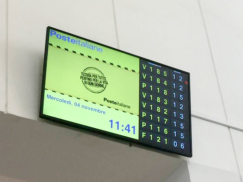 Consider this: The Italian Post Office has installed 11,500 digital signage displays in 3,800 or so branches across the country, used for queue management. The system is built around an app developed by the postal service. Customers book appointments using their phones, and watch the screens to see which counter to go to when their queue number comes up, as relayed by a management system.