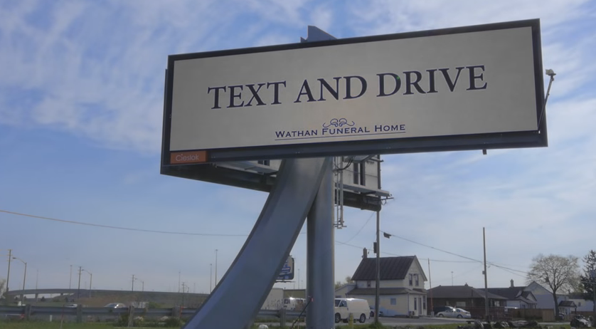 This is a digital campaign that ran on one of Toronto’s busiest roadways – the ever-crawling Gardiner Expressway – that has a funeral home very darkly encouraging motorists to go ahead and text while they drive.