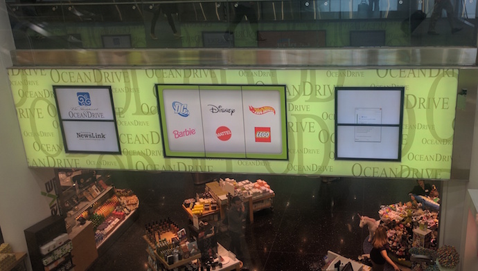 The wonky screen in the right has a notification message reminding the screen operator he or she can upgrade to Windows 10!