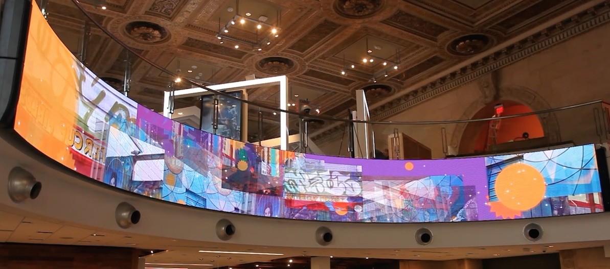 It has three “chapters” of content: Entertainment, Local Arts & Culture and Connected Life. The company’s creatives worked with generative art technologist Joshua Davis and Man Made Music on an application that makes the visuals respond to music or to a specific cadence.