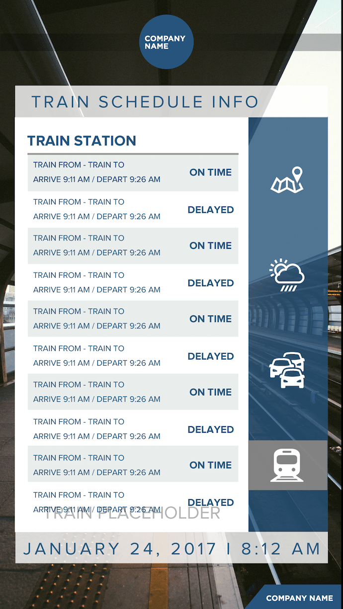 The system works off HTML code snippets – meaning as long as the CMS and/or play-out device supports a modern browser and full HTML, the transit data can be readily displayed.