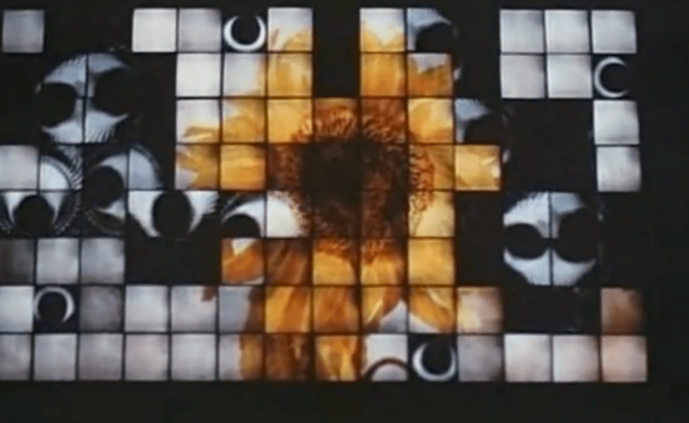Cherna doesn’t have direct memories, but has read up on the installation and describes it this way: “One entered a large room,” he says, “and sat on the carpeted floor, where you watched a wall of 112 cubes, whose ever-shifting and changing images moved backwards and forwards. Inside each cube were two Kodak Carousel slide projectors, which projected still photos onto the front of the cubes.”