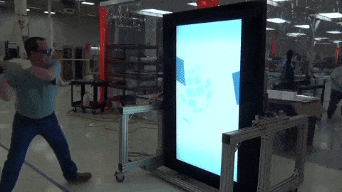 This is one of LG-MRI’s guys out in the production area of the facility taking numerous hard whacks at a big outdoor LCD totem with what looks like a solid piece of 3 by 3 lumber.