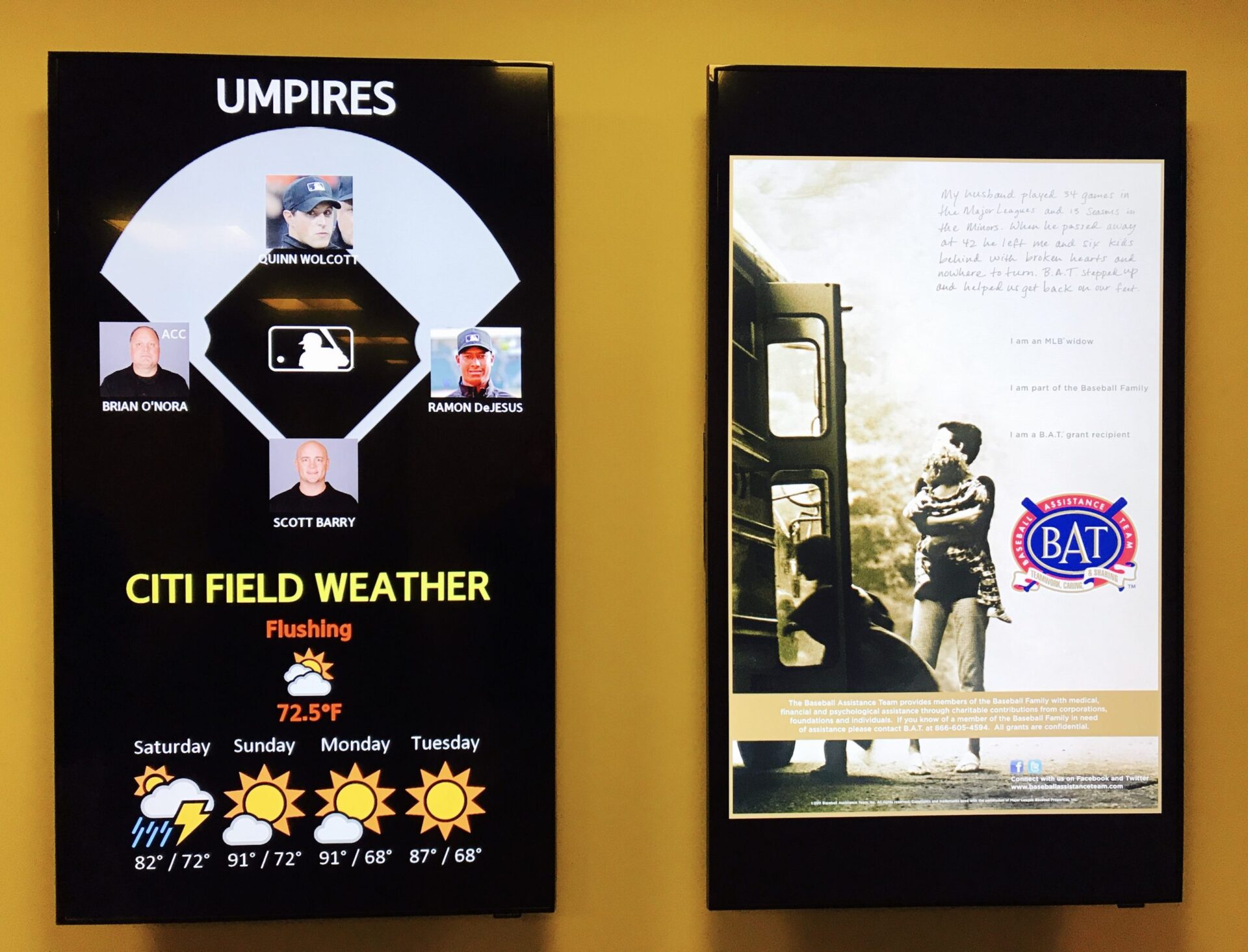 There are screens telling players about the starting lineup, that game’s umpires, game day schedules, meals, travel and whatever else needs to be communicated through the season (which ended yesterday). The program was put together by Denver-based software and solutions provider PingHD, which got its start doing concessions and other screens but, as often happens, has seen its product applied in other ways around a venue.