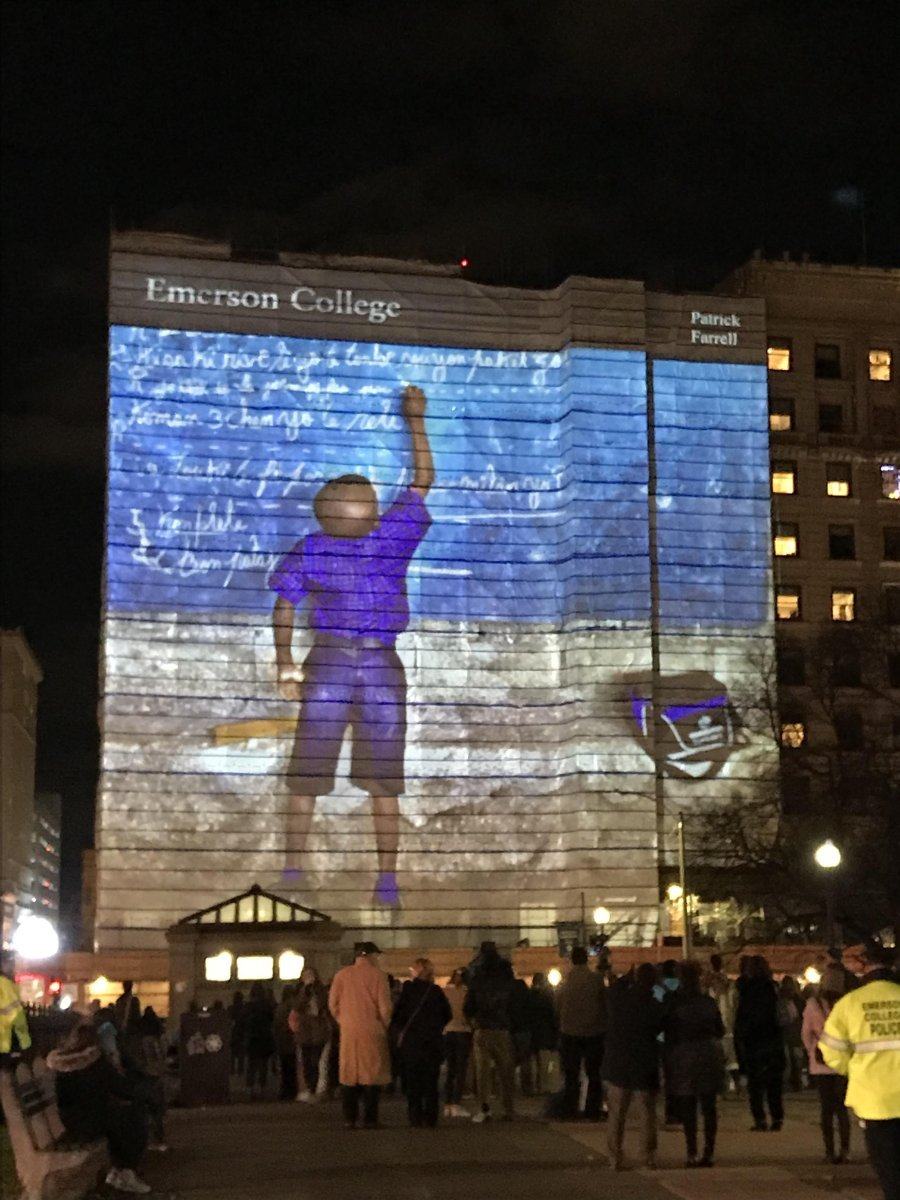 Emerson College has projectors blasting visuals from what looks to be more than a block away, an effort that ties into changes the Boston Globe says the school is making to boost its image locally and around the world. Here’s a lengthy Facebook video showing the screen in action …