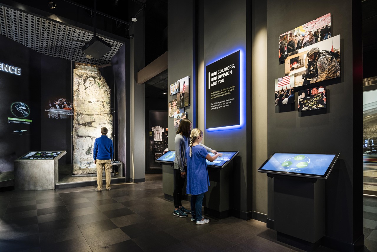 There is also a First in War permanent exhibit, which honors the Division’s story from its 1917 creation through the Vietnam War. Here as well, the reimagined exhibit includes new graphics, thematic environments, and films amplifying epic soldier experiences from WWI, WWII, the Cold War, and the Vietnam War.