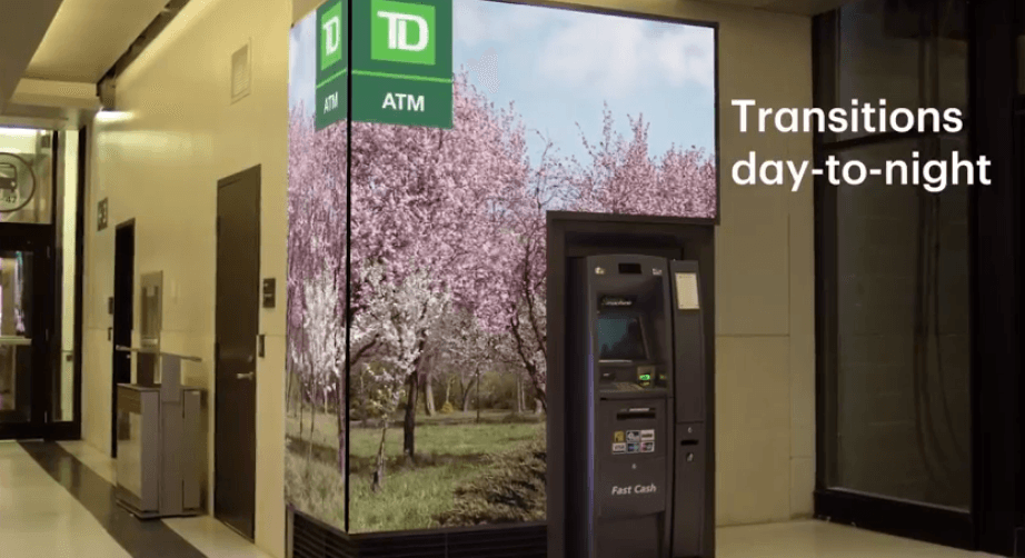 The Canadian chartered bank TD Canada Trust wanted to create a unique experience in Canada’s historic and busiest commuter hub – Union Station in Toronto. The Toronto digital agency St. Joseph’s Communications, working with property manager Metrolinx, developed a fine pitch LED surround at an ATM in the crazy-busy rail station that shoots out tracks in several directions from central Toronto.
