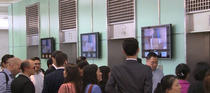 Captivate puts screens in office tower elevators as well as larger screens in some office tower lobbies.
