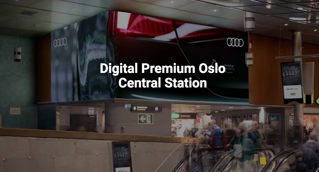 I like the curve on this new JCDecaux indoor LED at Oslo’s central train station. It is 31 square meters of LED, and you can see there are nearby screens that sync the same content.